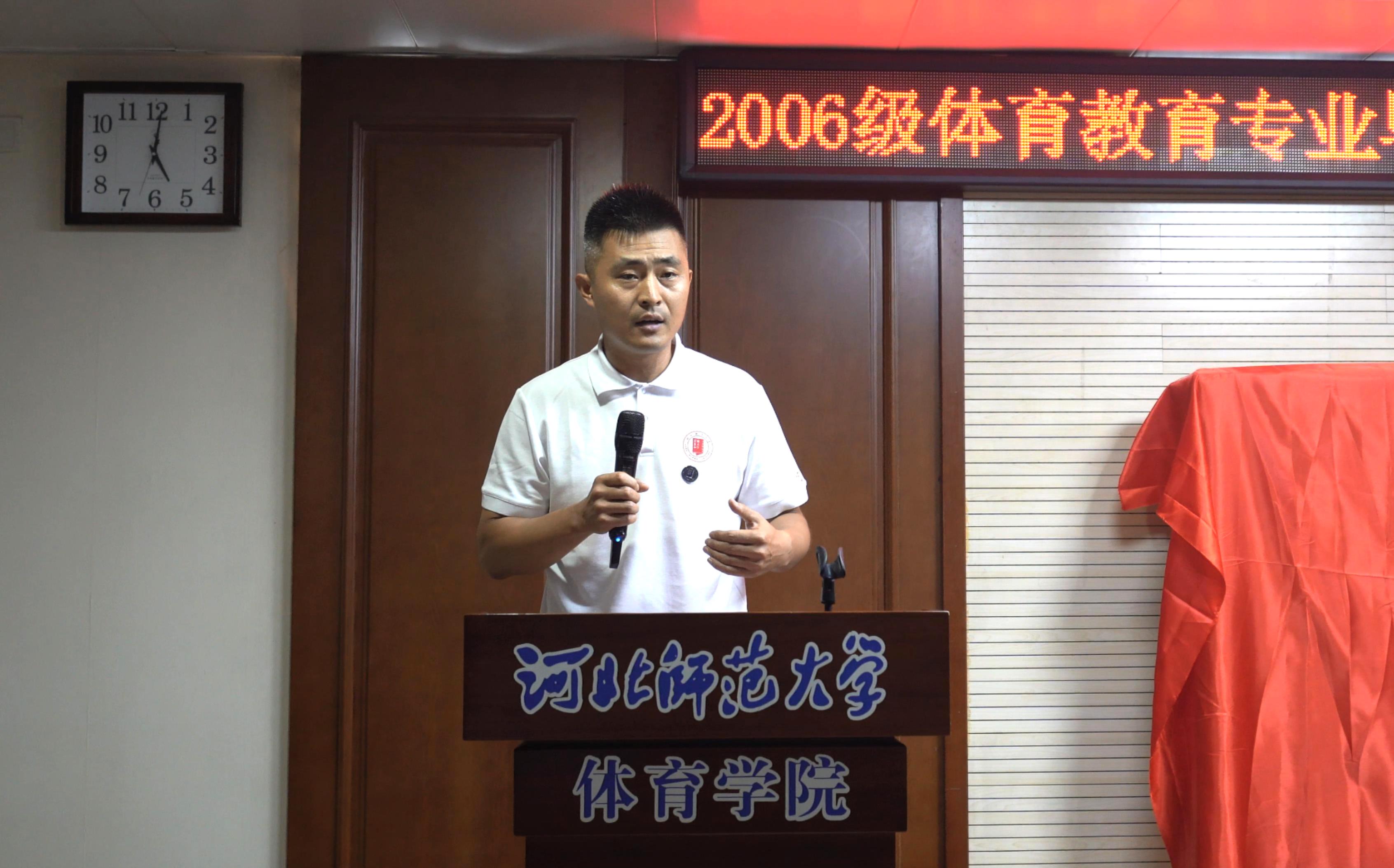 威廉希尔中文网站田径专业教师、时任2010届毕业生辅导员康红哲在讲话中饱含深情与力量,为校友们在各行各业取得的成就感到无比自豪,并勉励大家永远保持体育人的精神底色——敢拼敢闯、能扛重任、善于协作,在人生的赛道上永不止步、奋勇向前。