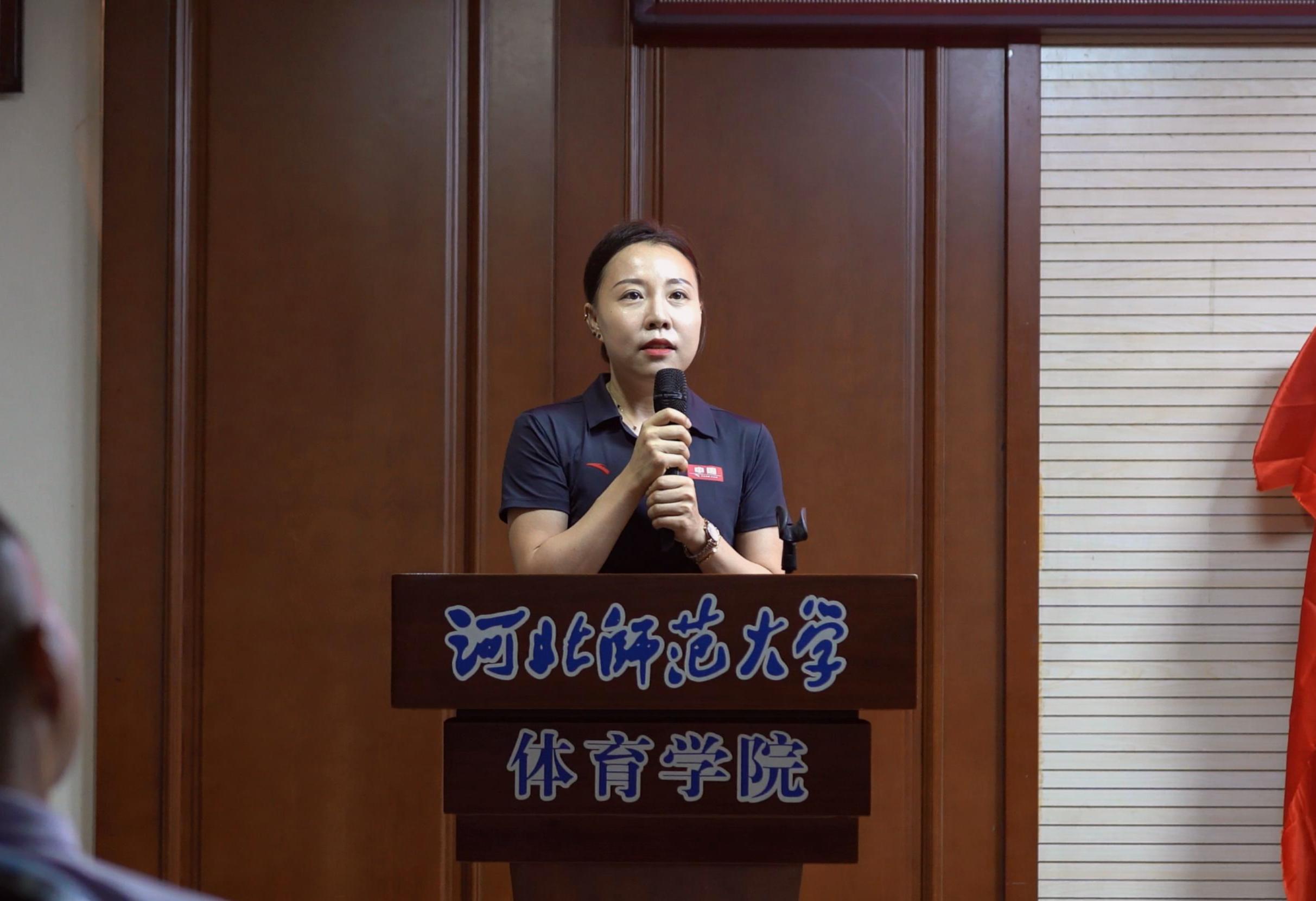 时任健美操专选班班主任的赵丽娜老师向所有返校校友表达了热烈欢迎和美好祝愿。她强调要传承体育育人的师道传统,希望校友们始终秉持体育人的精气神,在各自领域接续奋斗,以母校为荣,为母校争光。