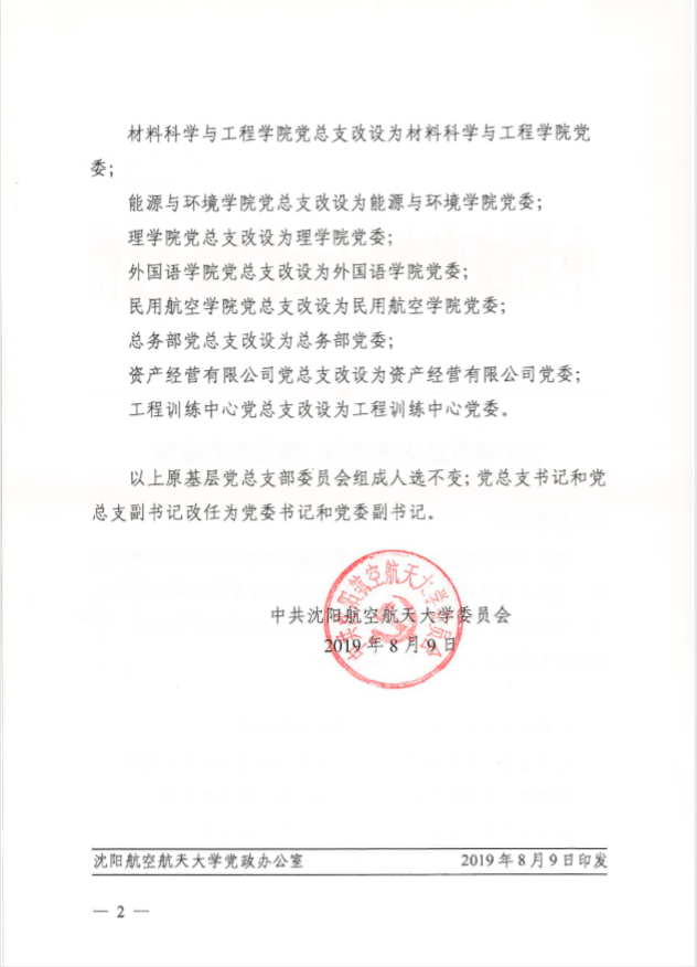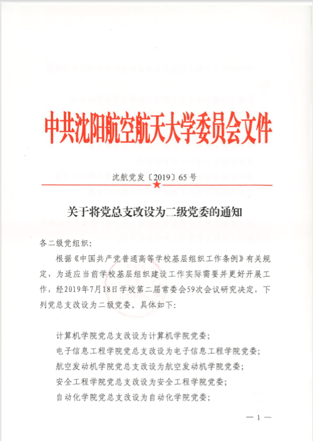 沈航党发【2019】65号 关于将党总支改设为二级党委的通知