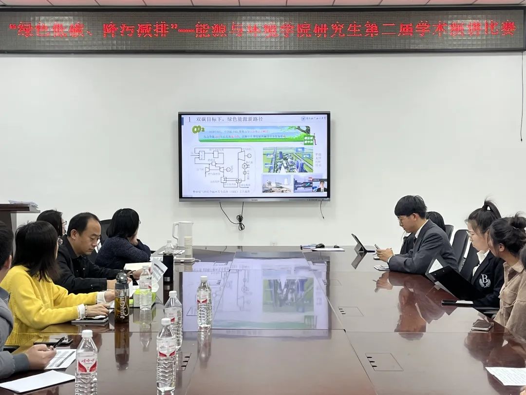 为深入学习贯彻习近平生态文明思想,落实绿色低碳循环发展理念,积极助力实现碳达峰、碳中和的宏伟目标,进一步激发beat365研究生对节能降碳的学术思考,促进学术环境建设、提升学术氛围、弘扬学术精神,培养研究生学术表达交流能力。beat365于11月2日在重点实验室B座318会议室成功举办以“绿色低碳,降污减排”为主题的beat365英国官网网站第二届研究生学术演讲比赛。院长杨天华,党委书记季志刚,副院长李秉硕,魏砾宏教授、张万里教授,新能源科学与工程系主任开兴平,朱轶铭老师和刘坚老师出席并担任比赛评委。