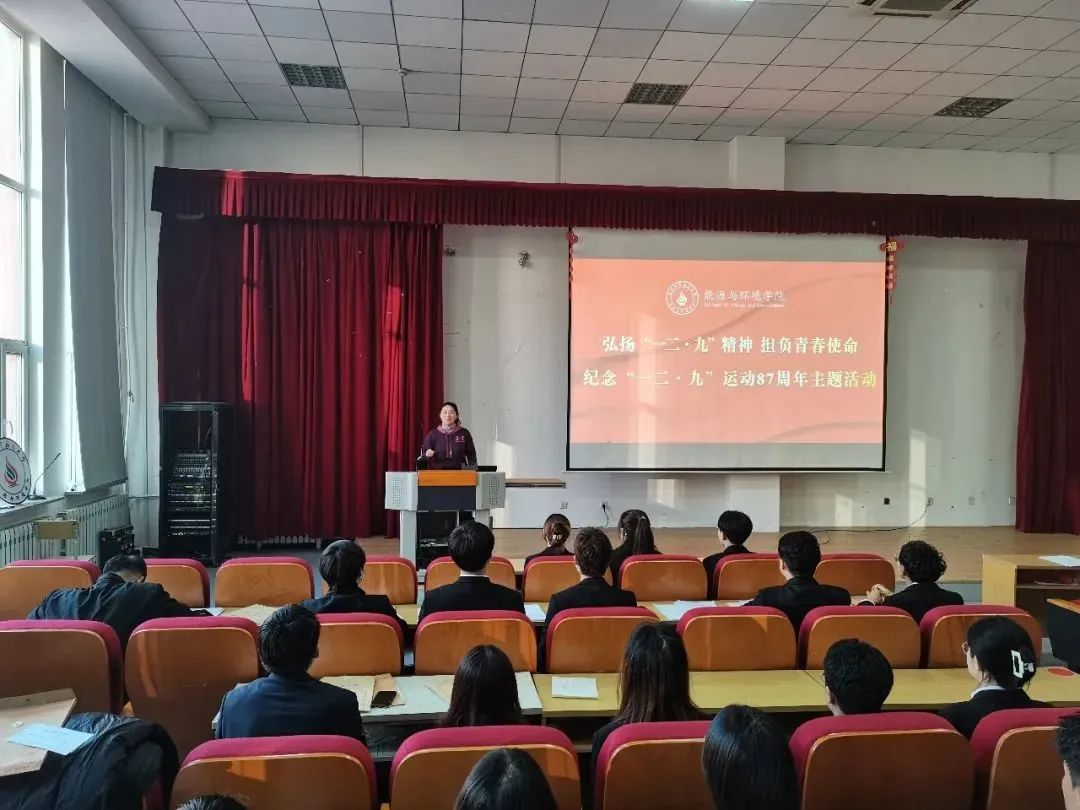 为纪念“一二·九”运动87周年,增强同学们的爱国信念,牢记青春使命,增强个人使命感与责任感,激发beat365青年学生努力拼搏、奋发向上的热情。beat365英国官网网站组织学生在能源楼二楼报告厅召开了“弘扬‘一二·九’精神 担负青春使命”主题宣讲会。