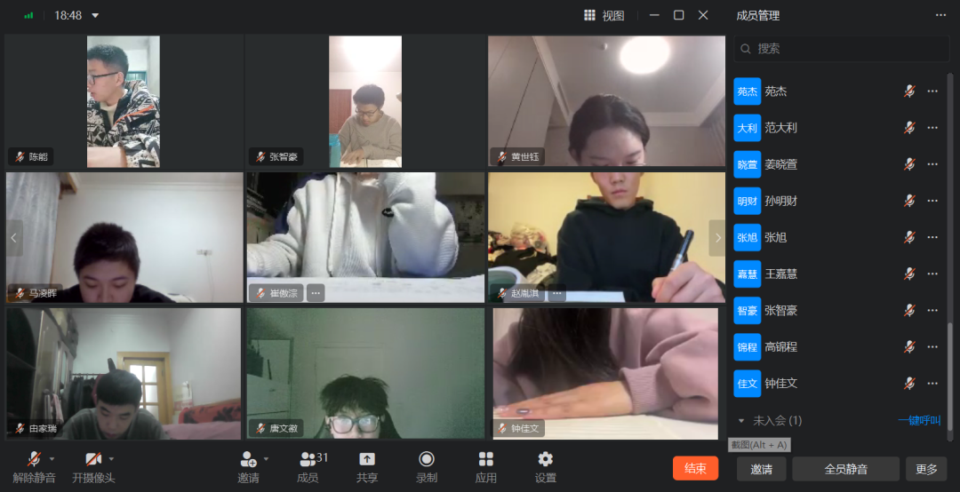 在近几日的晚自习中,学院学生会学习部对各班级晚自习进行了检查。检查中发现,大一同学整体线上晚自习的出勤率较高,学习状态较好。各班级同学认真复习相关知识,针对不懂的共性问题开展集中答疑,成效较好。