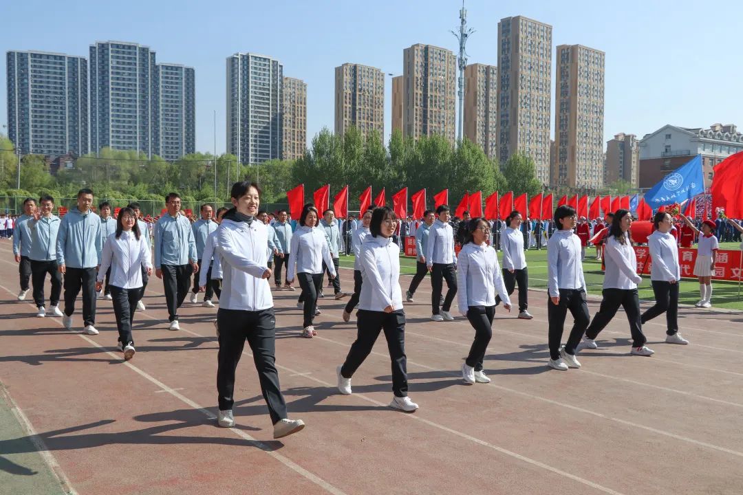 教师方队紧随其后,他们身着整齐的服饰精神激昂地前行,他们昂首阔步,脸上洋溢着幸福的微笑,充分展现了学院教师神采奕奕、活力充沛的精神面貌。