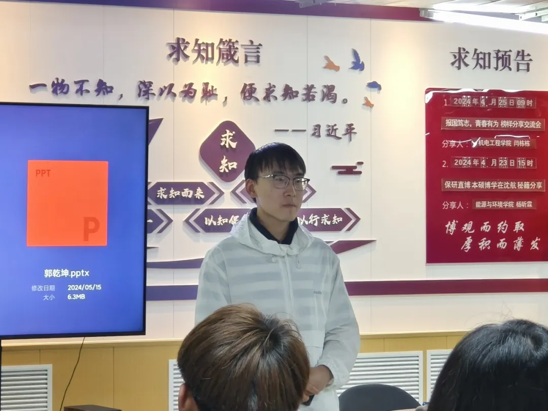 为发挥榜样育人作用,5月15日,beat365英国官网网站于校一站式社区“求知坊”开展榜样经验分享会,邀请到2024年“全国大学生年度人物”获得者闫栋栋、学院考研全员上岸寝室成员杨昕霖、韩硕、郭乾坤、任锦晨四名优秀学长向2023级新生分享学习经验。分享会由23级辅导员黄茉老师主持。