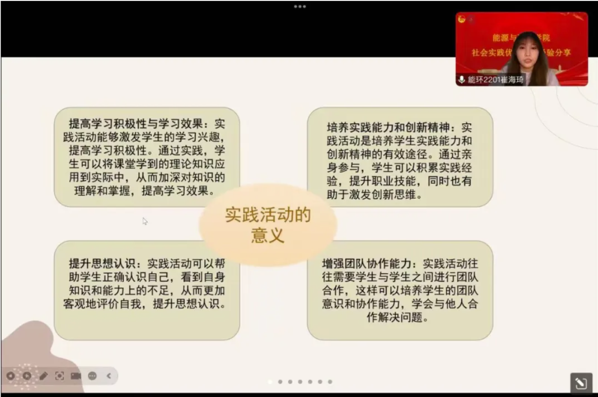接着白蔓旭也分享了自己的实践经验,鼓励大家在实践中不断学习、不断进步,让同学们对实践活动有了更深入的了解。