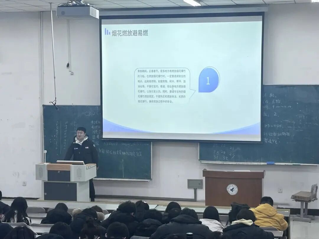 消防安全方面,辅导员重申“烟花燃放避易燃”,要求离校前做好宿舍门窗、水电、贵重物品“三查”,切断电器电源消除隐患;并结合案例普及逃生技巧,紧急时冷静有序撤离。